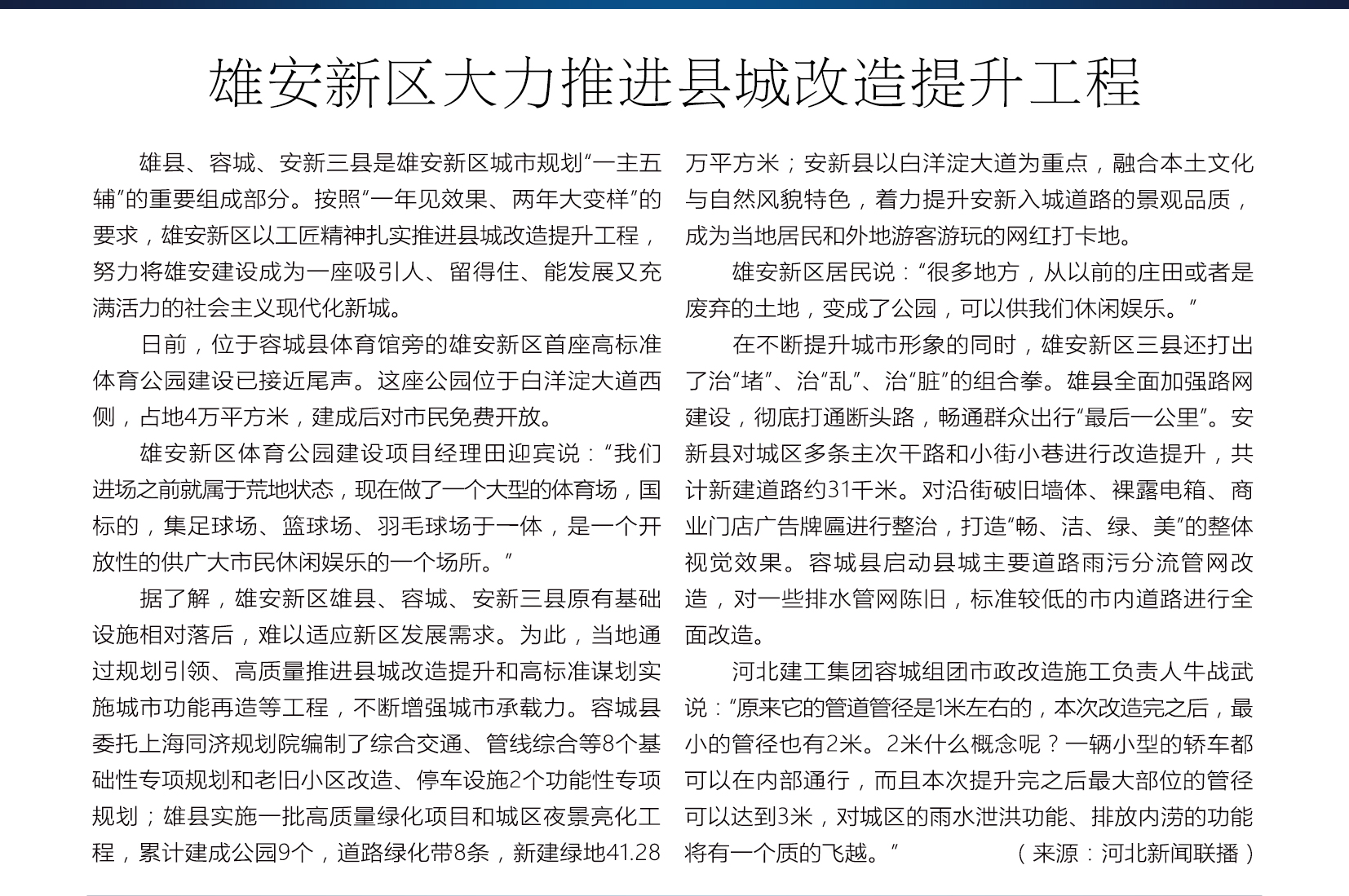 【雄安之声】统筹推进雄安城市整体开发建设 完善雄安新区市政基础设施