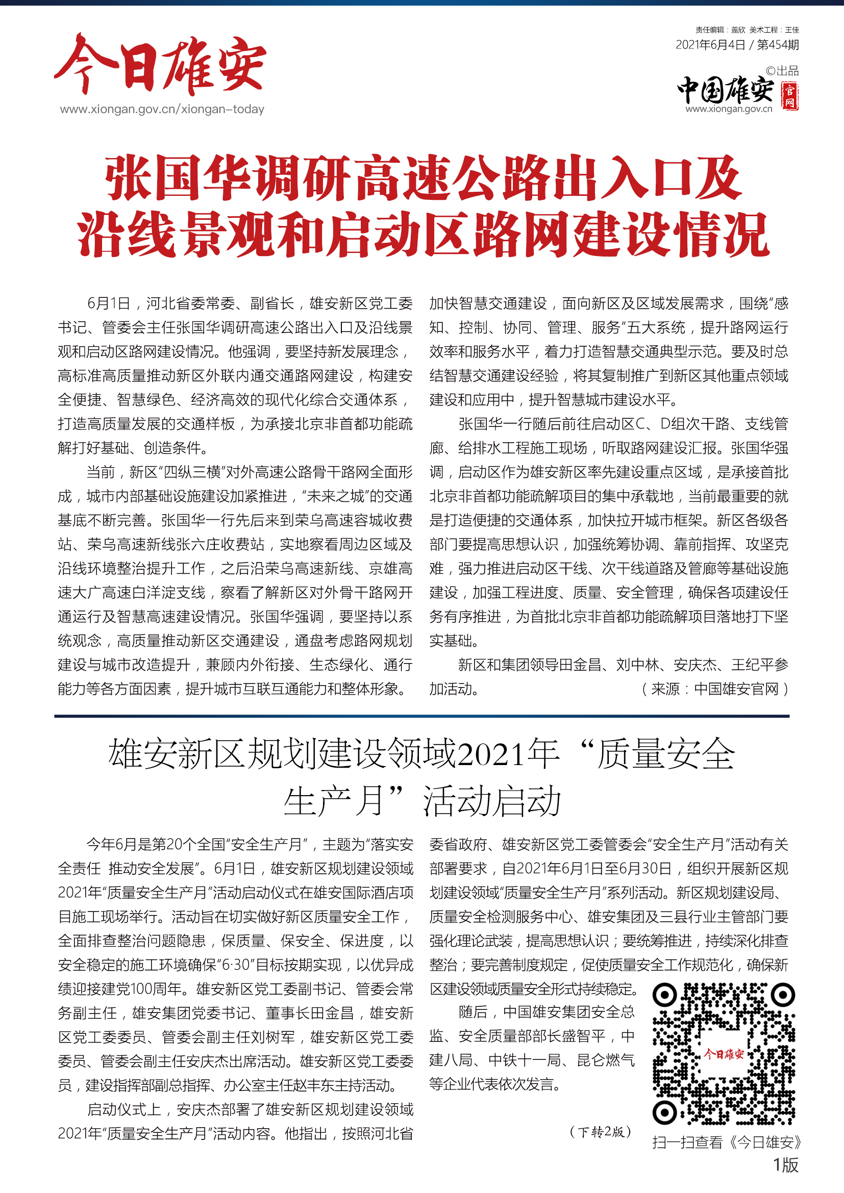 《今日雄安》 2021年6月4日 第454期