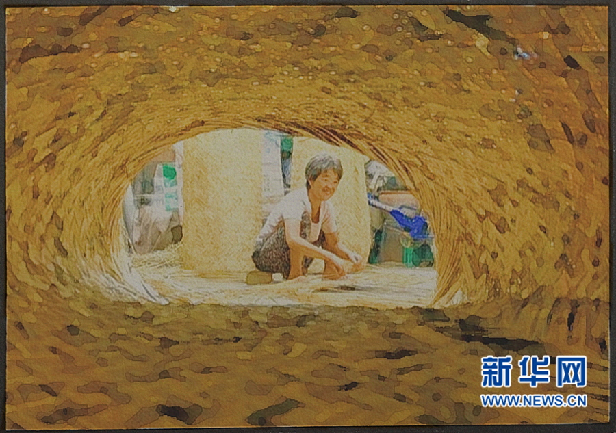 苇子选好,这下来就是轧苇、编织,最后修整。一张苇席可以同时由两人或两人以上编织。苇席品种繁多,形态各异、用途不一,人们根据用途将苇席分为炕席、囤席、包装席、装饰席等类别。