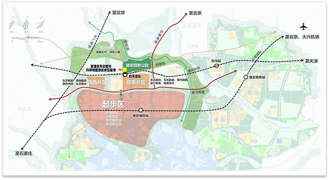 项目东临雄安郊野公园,西临北城村,南邻容易线,与高铁白洋淀站毗邻。