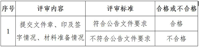 评审小组对报名文件进行初步评审。报名人如未通过其中任一项,初步审查将视为不合格,报名人只有通过初步评审,才能进入详细评审。