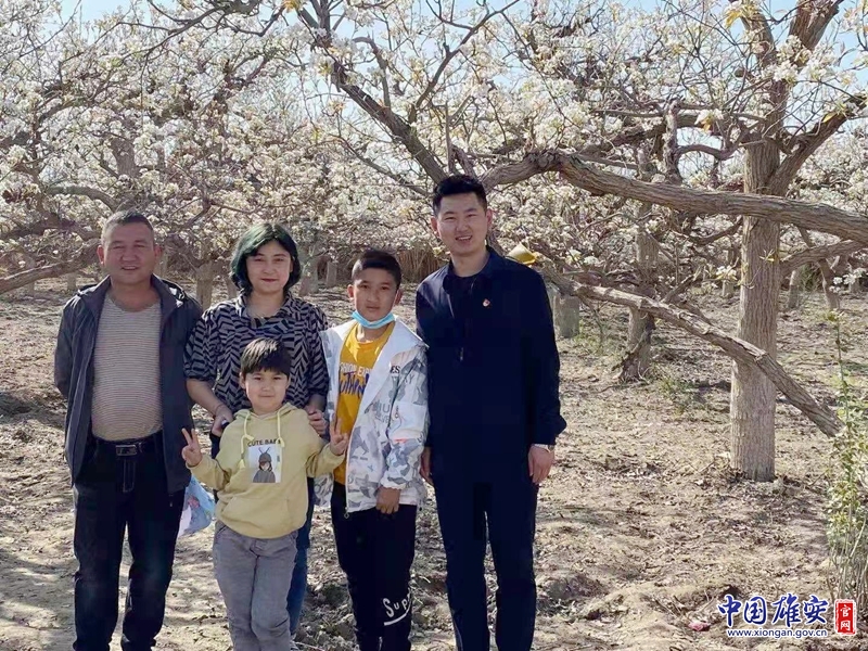 郝佳星(右一)与新疆巴州阿瓦提乡回族人民合影。中国雄安官网发