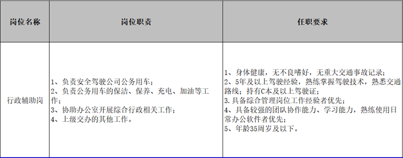 河北雄安人力资源服务有限公司(以下简称雄安人力公司)根据工作需要,现面向社会公开招聘行政辅助岗——司机驾驶员岗位业务外包员工。