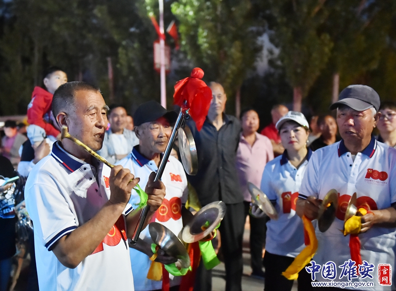 雄安新区安新县龙化乡拥城村庆祝建党100周年快闪活动现场。图为乐器演奏。中国雄安官网发