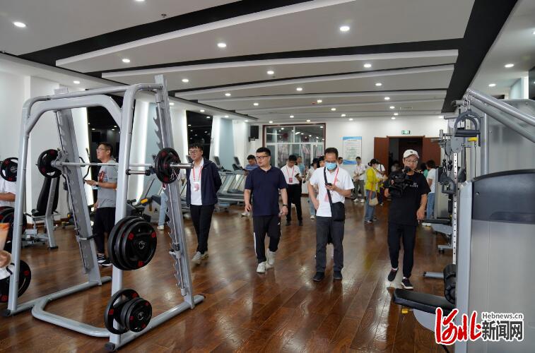 图为采访团参观白沙村体育馆健身房。郭明明 摄