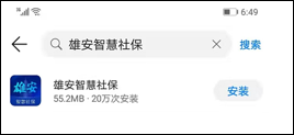 打开手机上的应用商店,搜索“雄安智慧社保”APP,点击【安装】按钮进行安装。