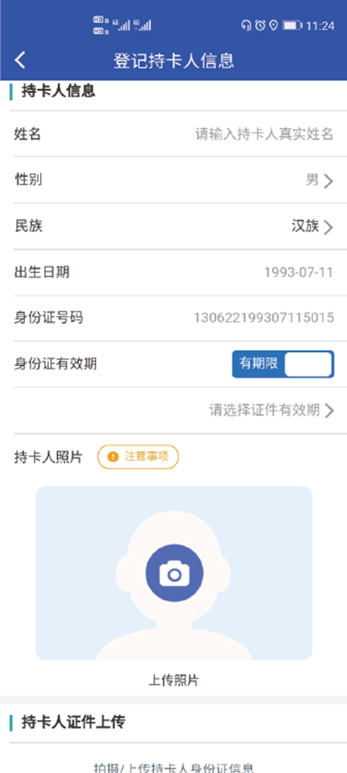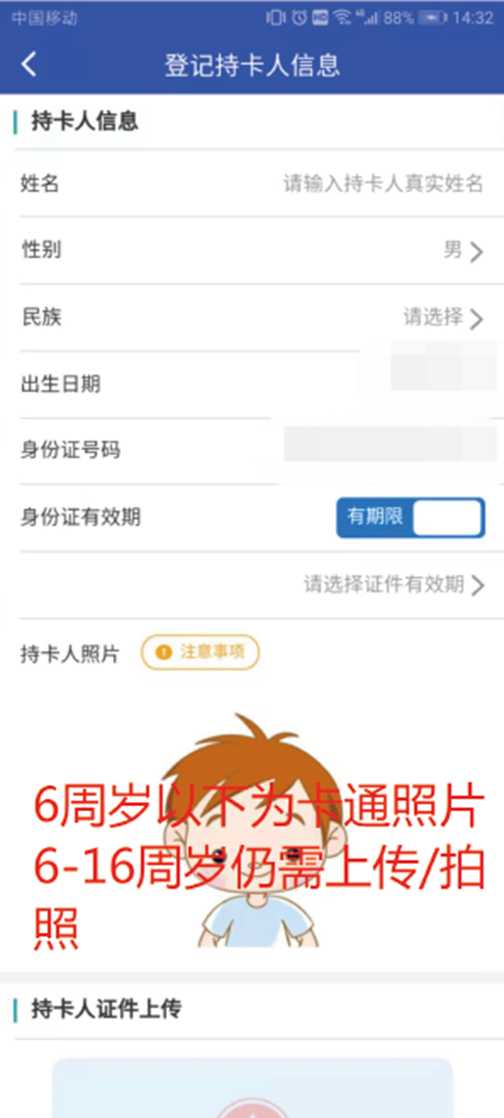 16周岁以上(含16周岁)上传证件是身份证,填写身份证背面有效期限。