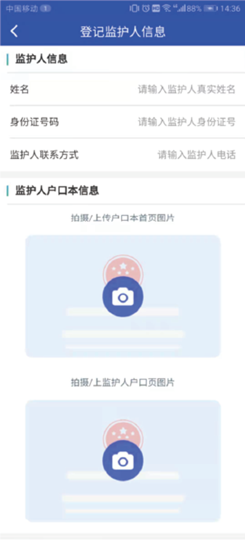 2.16周岁以下申领人:需要拍摄上传本人户口页和监护人的有效身份证照片。