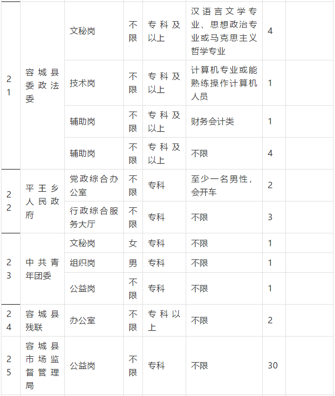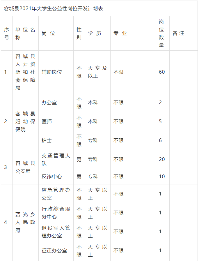 2.具备容城县2021年大学生公益性岗位开发计划表岗位要求条件;
