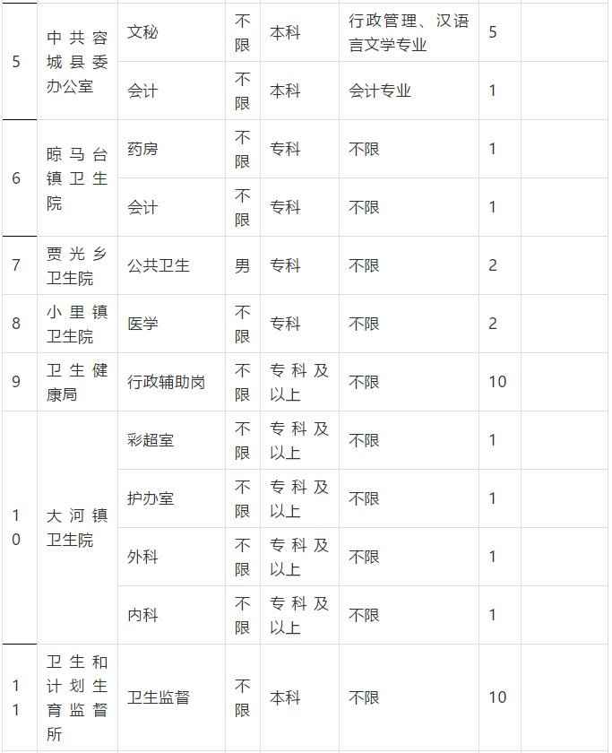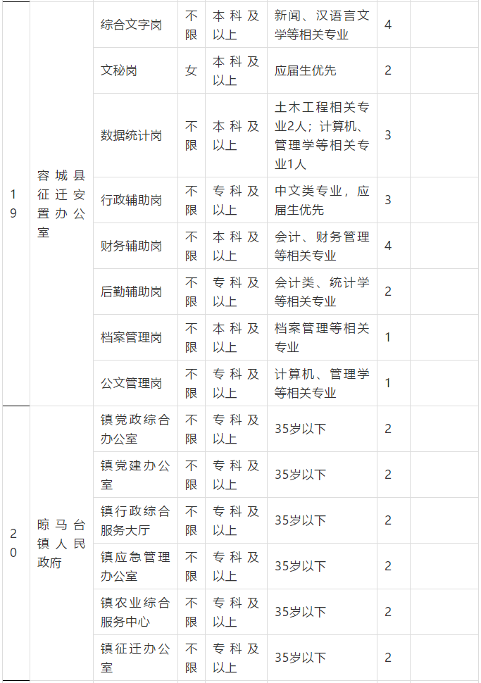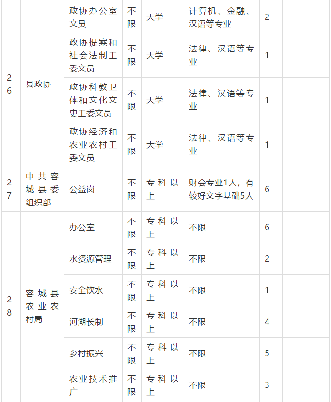 容城县户籍或者拥有容城县居住证的常住人口,毕业五年内、国家承认学历的全日制(含民办全日制)大专及以上学历的未就业毕业生,自愿从事公益性岗位工作,且满足以下条件:
