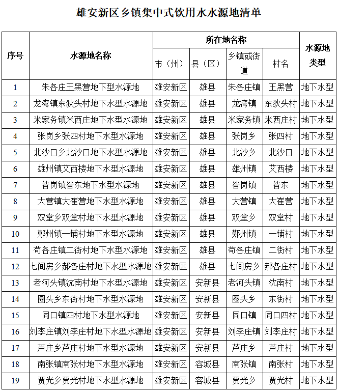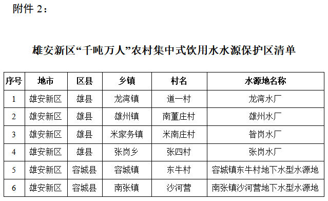 2.雄安新区“千吨万人”农村集中式饮用水水源保护区清单