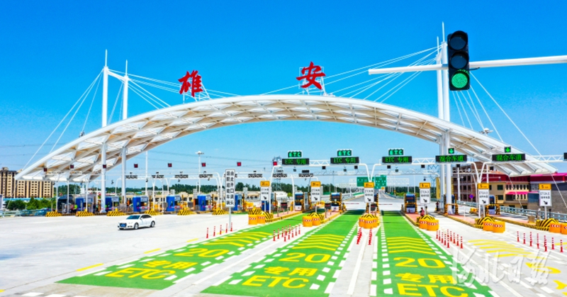 5月29日,无人机航拍通车的京雄高速雄安收费站。河北日报记者耿辉 摄