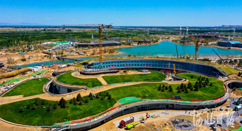 6月3日,无人机航拍雄安郊野公园雄安主场馆建设现场。河北日报记者耿辉 摄