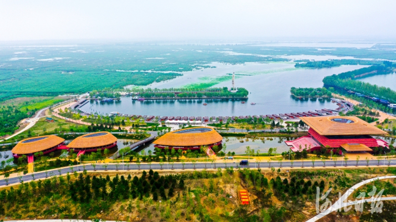 6月16日,无人机航拍焕然一新的白洋淀码头。河北日报记者耿辉 摄