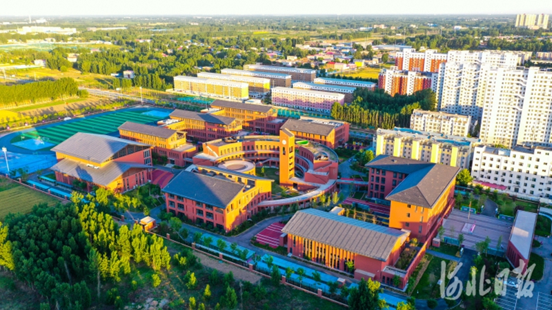 6月4日,无人机航拍雄县第三高级中学。雄县第三高级中学是雄安新区第一个学校项目,河北省首个三星级绿色建筑标准中学项目、雄安新区首个永久性房建项目。河北日报记者耿辉 摄