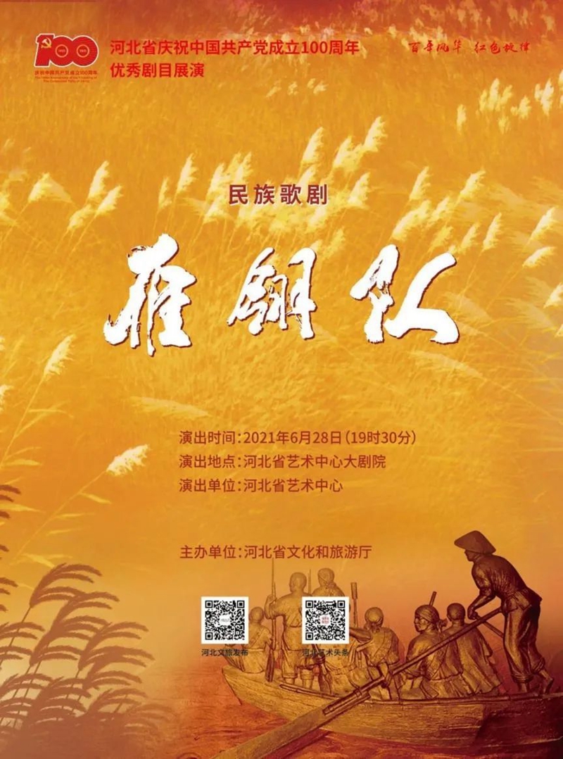 民族歌剧《雁翎队》是为庆祝中国共产党成立100周年精心组织创作的重点剧目,由中共河北省委宣传部、河北省文化和旅游厅指导,河北省艺术中心出品。今年民族歌剧《雁翎队》入选由中共中央宣传部、文化和旅游部、中国文学艺术界联合会共同举办的庆祝中国共产党成立100周年优秀舞台艺术作品展演和河北省庆祝中国共产党成立100周年优秀剧目展演活动,这不仅是文艺工作者致敬革命先烈、传承红色基因、赓续精神血脉的重要体现,更是为建党百年献上的一份厚礼。