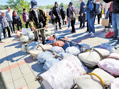 “今天带的货少,就带了10多斤蔬菜,30多斤小苹果,到城里大概能卖100多块钱。”孙秀荣说,她跟着这趟列车到城里卖货已经有30多年了。每年一过正月十五就开始出来卖货,一直卖到腊月二十八九。先是卖苹果、酸梨,再卖杏、桑椹、大樱桃和野菜、蔬菜,秋天卖新鲜的苹果和梨。