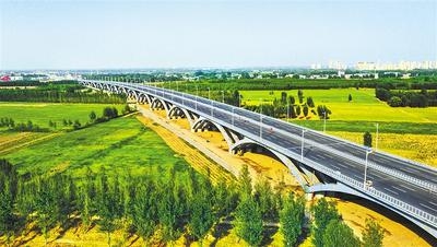 无人机航拍的京雄高速公路河北段白沟河特大桥。桥梁(包含引桥)全长约1.76公里,建成后将成为目前我国规模最大的上承式钢箱连拱桥。河北日报记者耿辉 摄