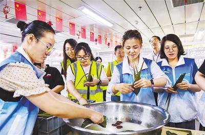 日前,雄安集团职工志愿者与雄安建设者们一起包粽子。