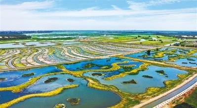 无人机航拍的府河河口湿地水质净化工程。