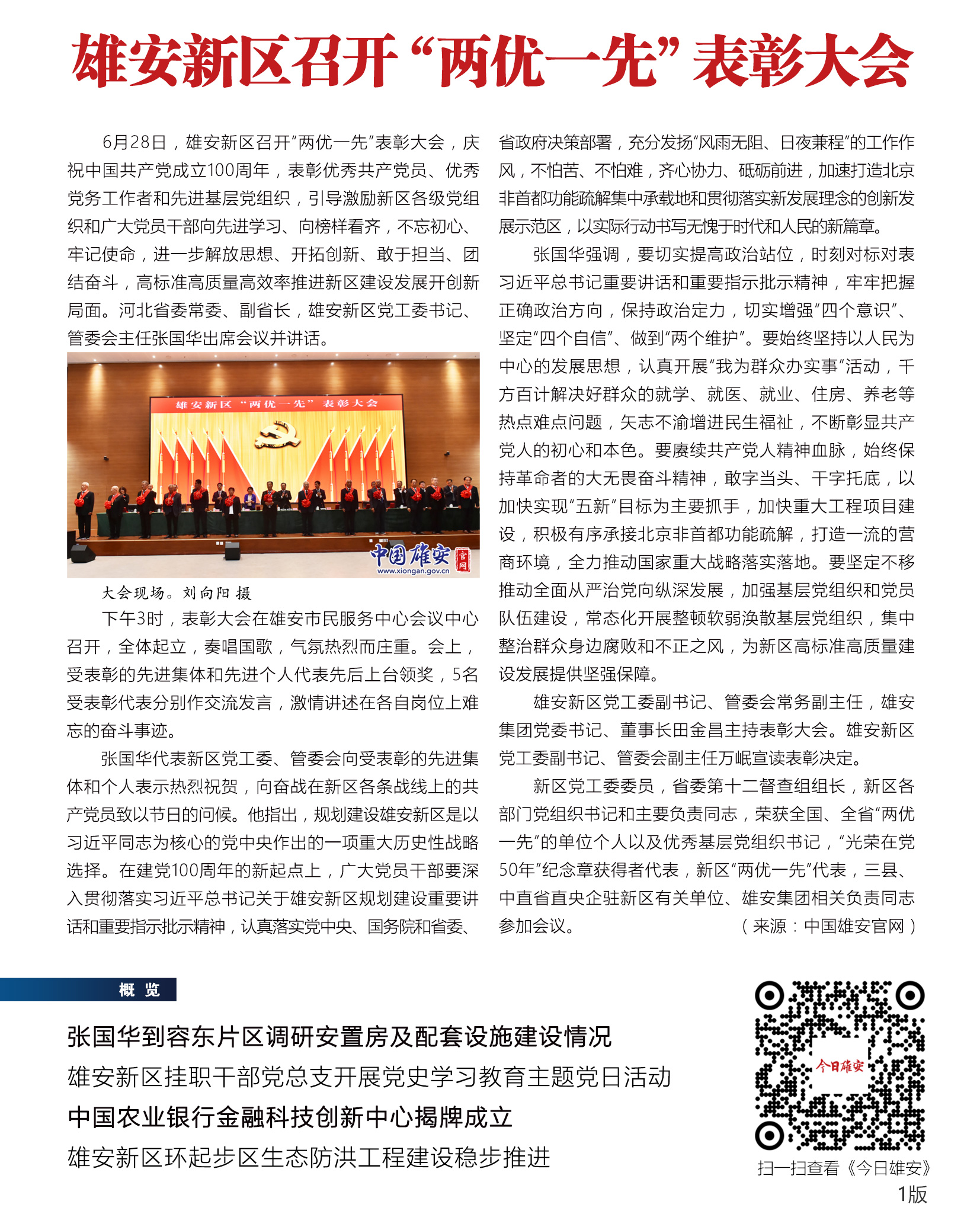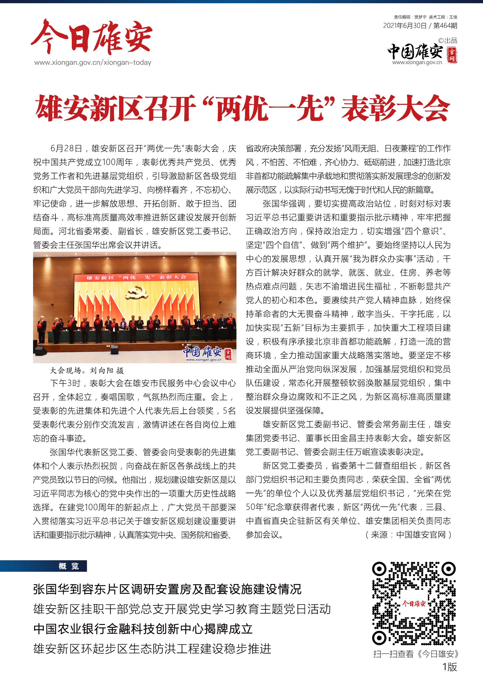 【雄安之声】雄安新区召开“两优一先”表彰大会