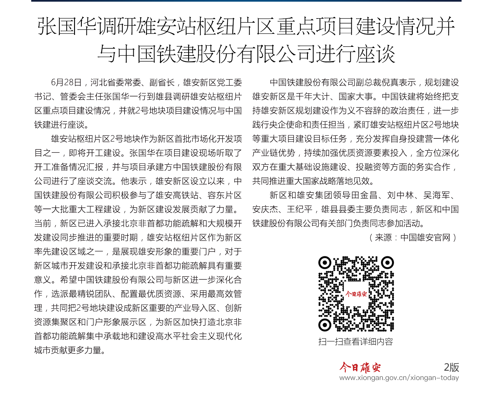 张国华调研雄安站枢纽片区重点项目建设情况并与中国铁建股份有限公司进行座谈