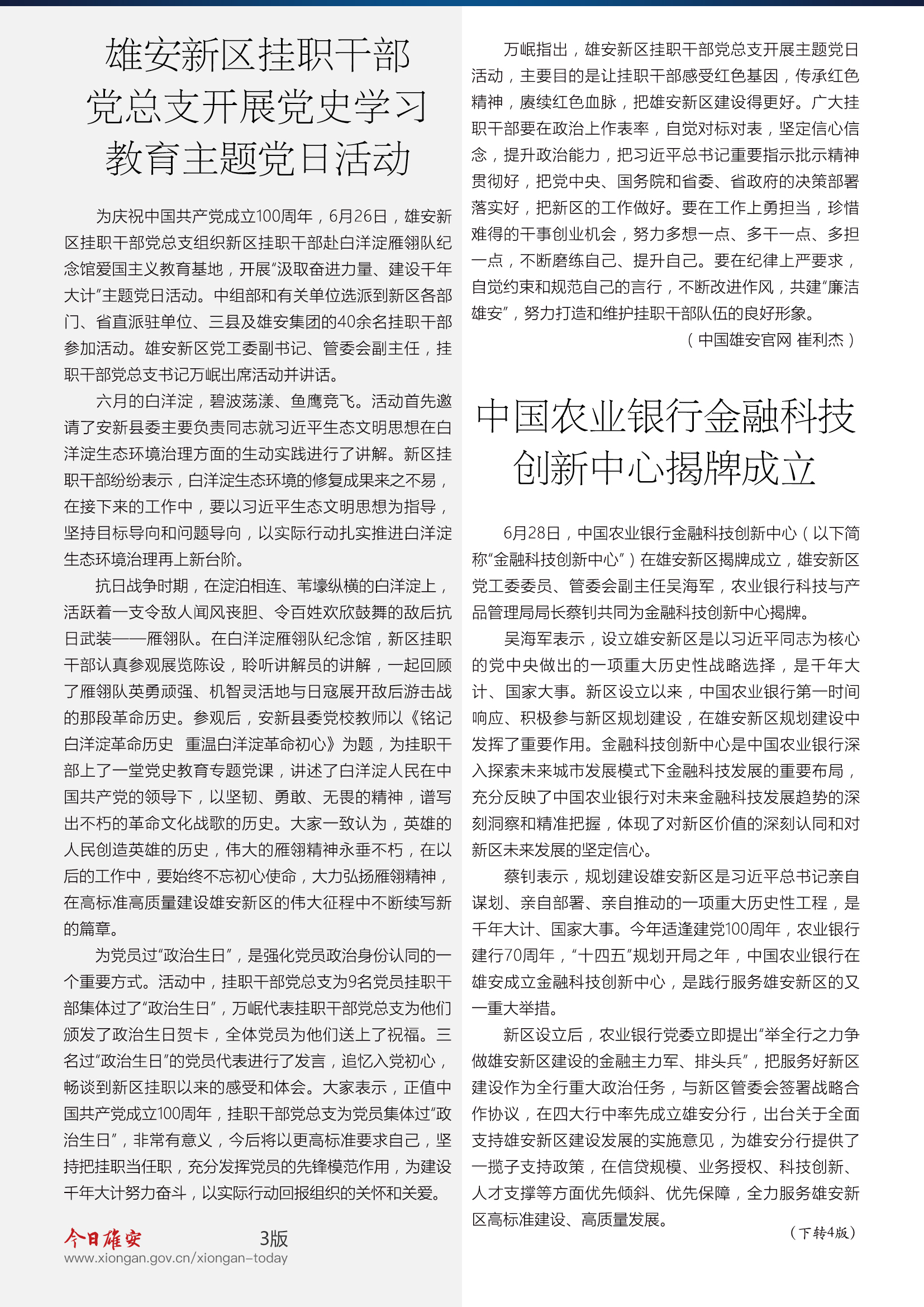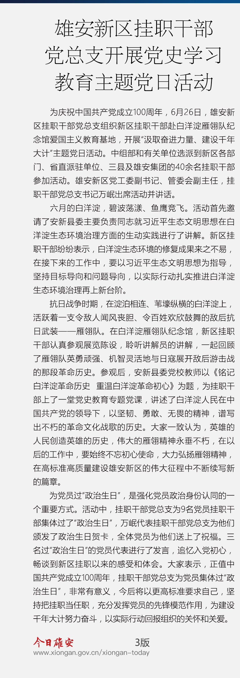 雄安新区挂职干部党总支开展党史学习教育主题党日活动