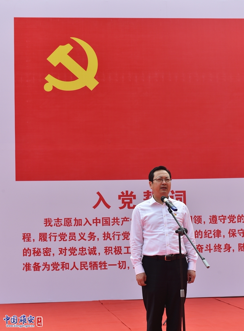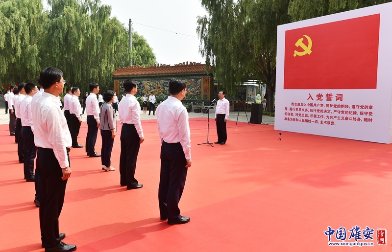 宣誓结束后,张国华同志强调,要认真学习领会习近平新时代中国特色社会主义思想,深入贯彻落实习近平总书记重要讲话和重要指示批示精神,切实增强“四个意识”、坚定“四个自信”、做到“两个维护”,不断提高政治判断力、政治领悟力、政治执行力,始终做共产主义远大理想和中国特色社会主义共同理想的坚定信仰者和忠实执行者。要扎实开展党史学习教育,从鲜血浸染的红色热土中,从感人至深的红色往事中,不断增强政治认同、思想认同、情感认同,确保革命传统和优良作风薪火相传。要充分利用红色资源,认真梳理红色文化,讲好红色故事,把党的历史学习好,把党的成功经验传承好,推动先辈们开创的伟大事业从胜利迈向新的胜利,从辉煌走向新的辉煌。要心中装着人民,工作为了人民,想群众之所想,急群众之所急,解群众之所难,扎实开展“我为群众办实事”实践活动,深入推进20项民生工程,着力办好10件民生实事,不断增强人民群众的获得感、幸福感和安全感。要强化使命担当,无愧历史重任,紧盯时间节点和任务要求,牵住承接北京非首都功能疏解这个“牛鼻子”,全力推动标志性项目建设,加快实现“五新”目标,努力打造贯彻落实新发展理念的创新发展示范区和新时代高质量发展的全国样板。要加强党的领导,全面从严治党,持续改进作风,打造一支忠诚干净担当的高素质干部队伍,不断增强党的凝聚力和战斗力。要始终保持“越是艰险越向前”的英雄气概和“敢教日月换新天”的昂扬斗志,进一步解放思想、开拓创新、敢于担当、团结奋斗,发扬“风雨无阻、日夜兼程”的工作作风,不怕苦、不怕难,高标准高质量高效率推进雄安新区建设发展,以优异成绩庆祝建党100周年。