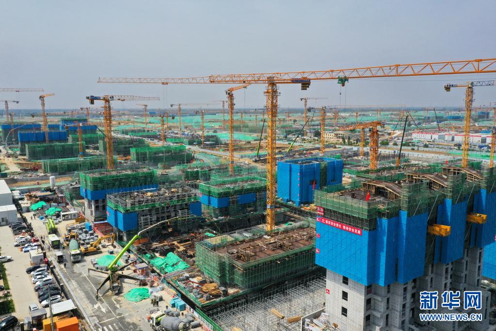 这是雄安新区容西片区建设现场(7月3日摄,无人机照片)。