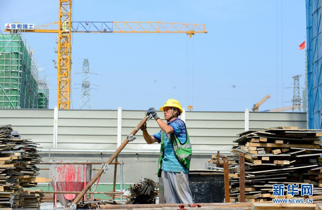 7月3日,中铁十二局的工人在雄安新区容西片区建设现场施工。