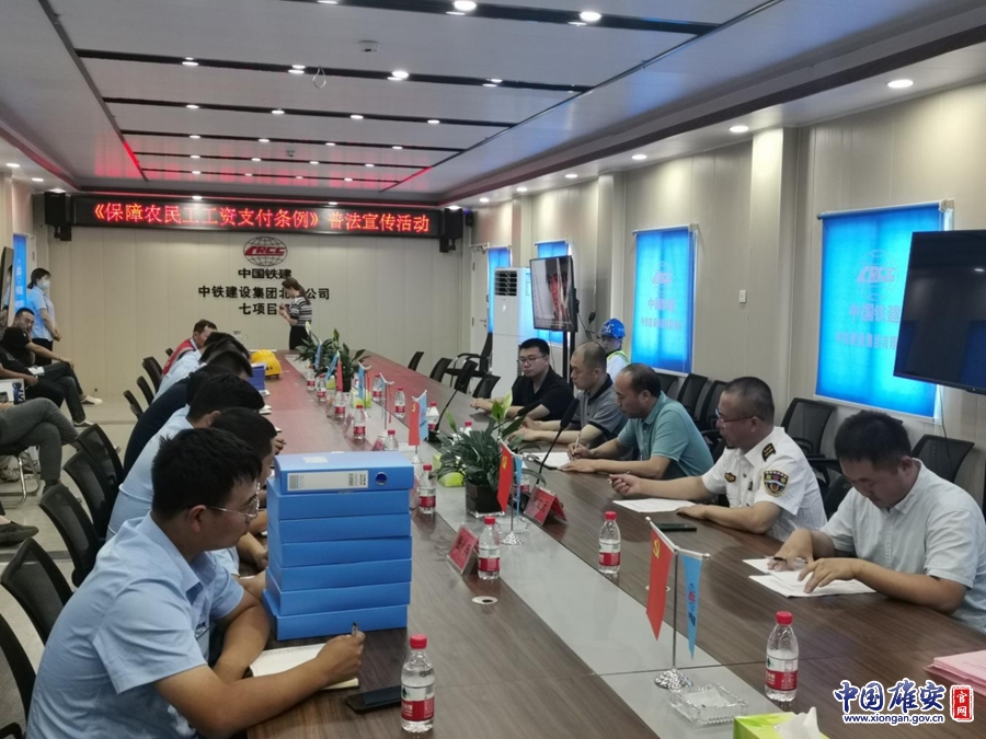 中国雄安官网7月4日电 为进一步推动《保障农民工工资支付条例》宣传贯彻工作,营造和谐劳动用工关系的氛围,按照《贯彻实施<保障农民工工资支付条例>执法宣传培训活动方案》部署,6月30日,雄安新区综合执法局和容城县劳动保障监察大队前往容西片区C单元安置房及配套设施项目C1标段中铁十二局集团项目部、C3标段中铁建设集团项目部,联合开展了执法宣传进工地活动。