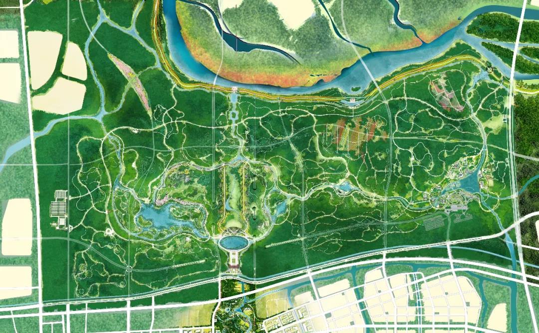 雄安郊野公园北起南拒马河右岸,南至容东城市组团,西起贾光,东至京雄高速,总面积约2.62万亩。以“生态雄安”为总体规划理念,坚持以人为本,以改善人居环境、营造生态功能完备的区域景观为目标,全面落实创新、协调、绿色、开放、共享发展理念,统筹规划整体格局和蓝绿空间布局,提升整体形象,集中体现大型林地的生态屏障、水源涵养、休闲游憩功能,突出自然野趣,强化生态、自然、人文特色。