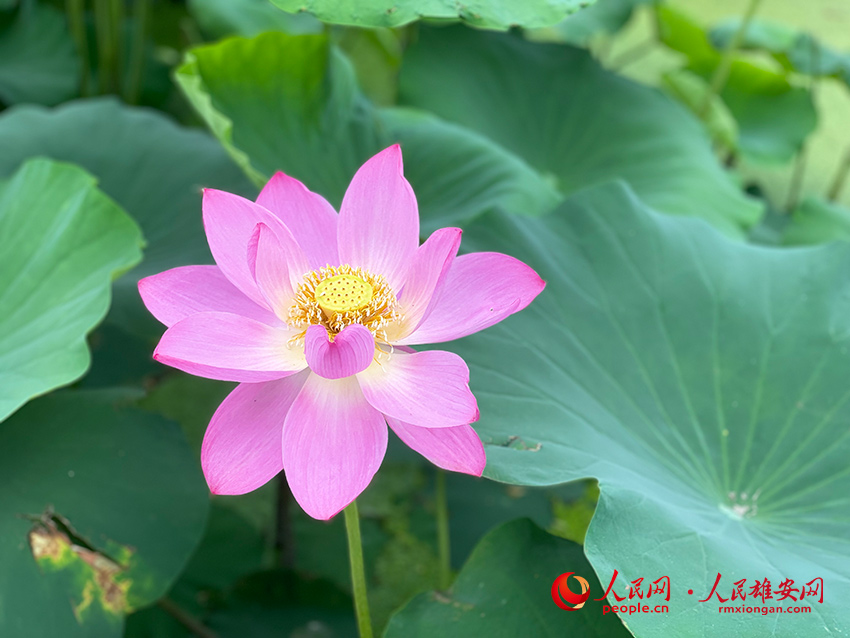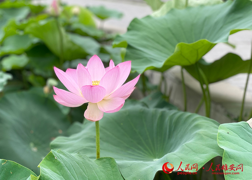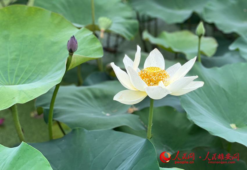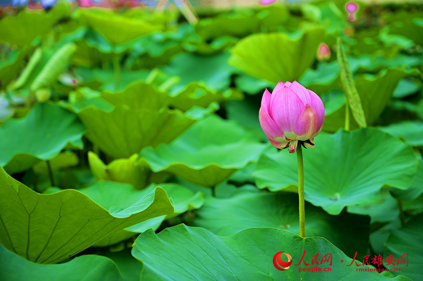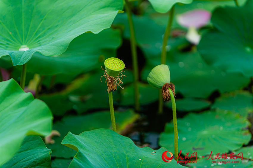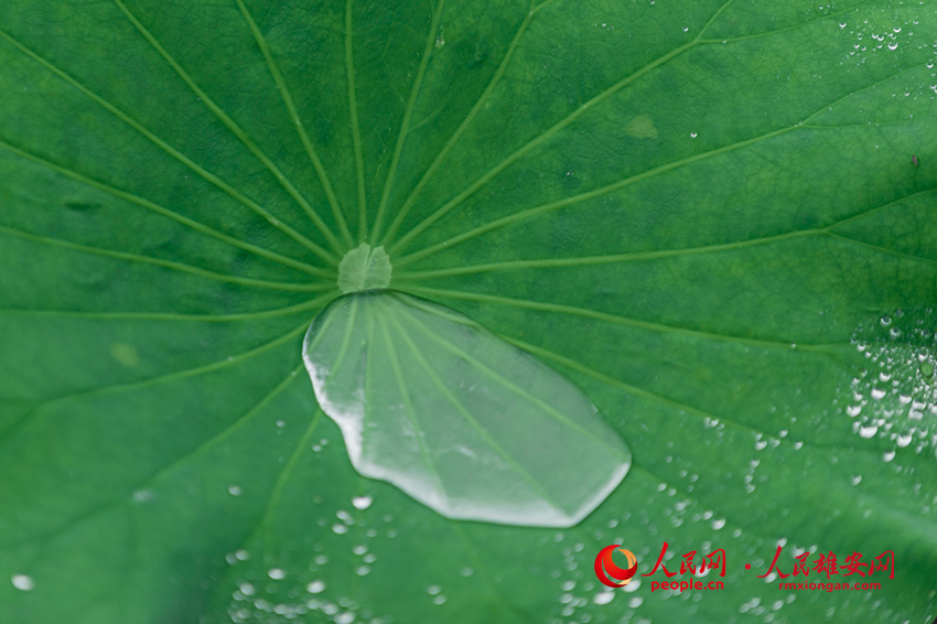 大片的荷叶铺展在水面上。人 民网窦薇 摄