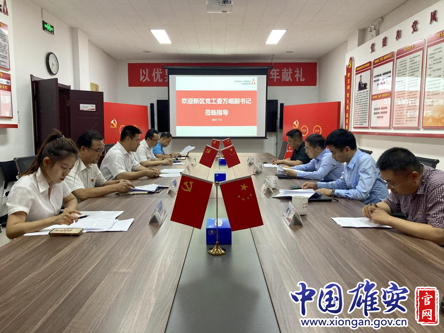 在中国铁塔河北雄安分公司,万岷一行现场参观了企业党建室、网络监控调度中心、应急保障指挥中心,并详细了解企业党建工作开展情况,与企业负责人进行深入交流。万岷强调,企业要发展,就要毫不动摇坚持党的领导,以党建引领各项工作开展,把党组织建在项目一线,充分发挥每名党员的先锋模范作用,推动企业在参与新区建设发展中取得更大突破;要坚持互利共享,注重技术创新,助力雄安建设,实现共同发展。