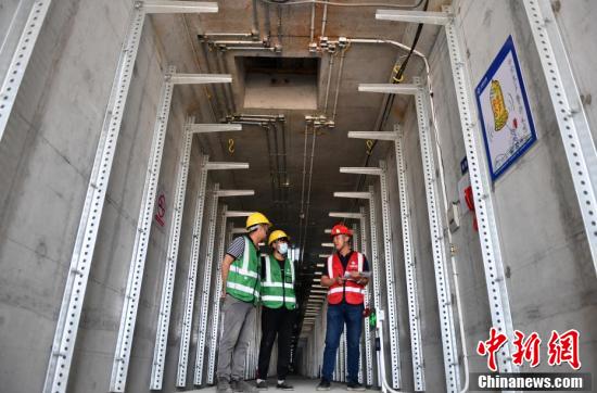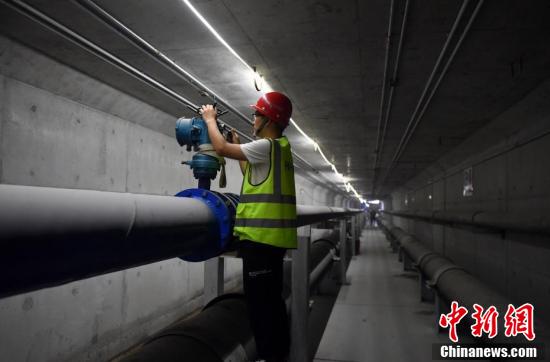 项目施工人员在水信仓内巡检。中新社记者韩冰 摄