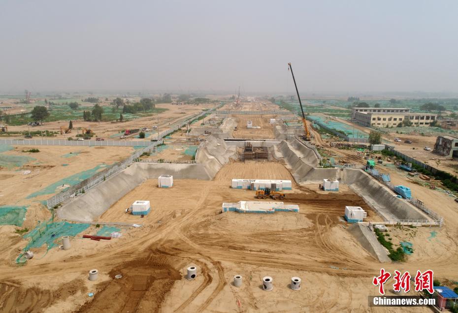 7月7日,记者探访河北雄安新区启动区综合管廊项目。目前,项目主体结构基本完工,主要进行土方回填、排水管网和机电安装工程施工。图为项目土方回填施工现场。中新社记者韩冰 摄