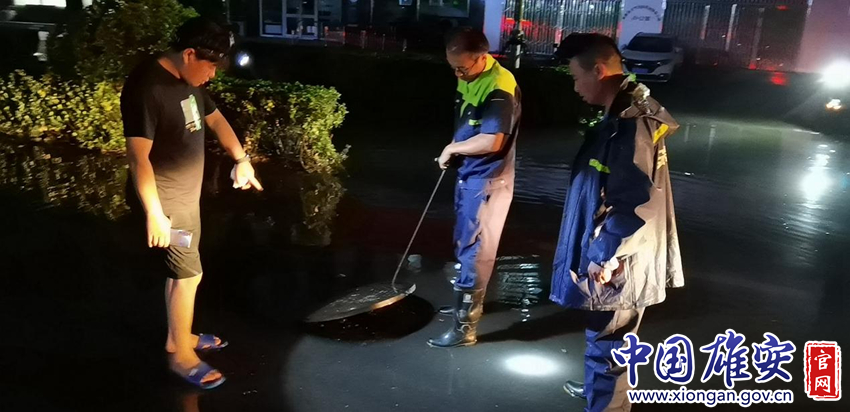 7月11日晚,安新县住建局工作人员开展城区防汛排涝工作。
