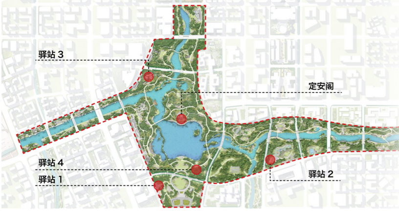 容东片区截洪渠景观一期配套公共空间主要为驿站,包括3个绿道驿站和1个林间驿站,绿道驿站每座可利用面积约56平方米,林间驿站可利用面积约110平方米。
