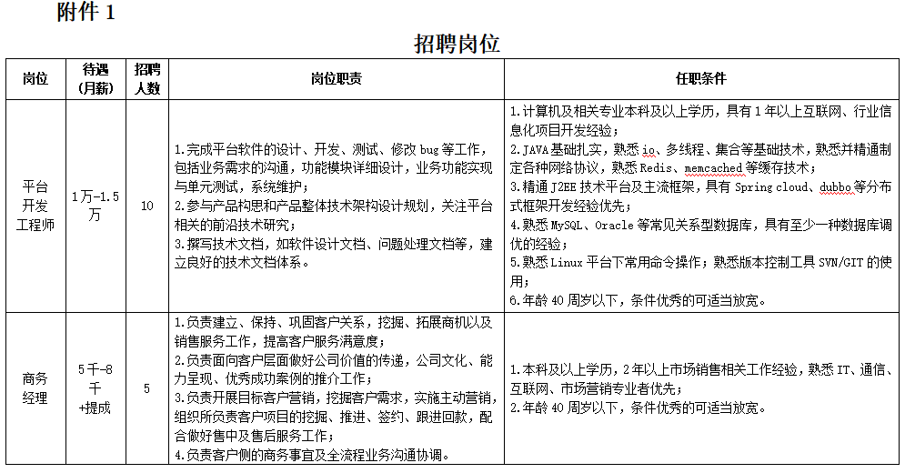 招聘岗位、任职条件及待遇等具体信息见附件1。