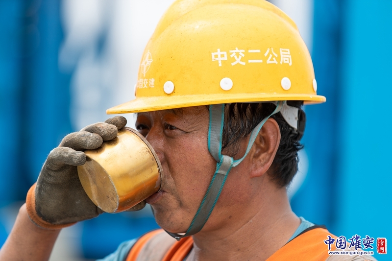 工地上的建设者正在补充水分。中国雄安官网记者高盟 摄