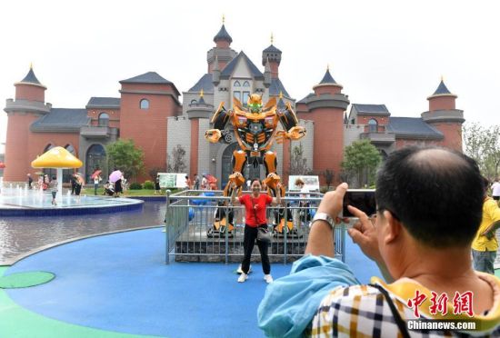 7月21日,雄安郊野公园吸引游客参观游玩。近日,雄安郊野公园试运营开园迎客。公园总面积2.62万亩,拥有14个主题功能各异、“一园一景”的城市展园,是雄安新区“一淀、三带、九片、多廊”生态格局中“九片”之一。图为游客在雄安郊野公园辛集展园拍照留念。中新社记者韩冰 摄