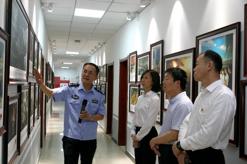 调研中,县局党委副书记黄新代表局党委现场汇报和介绍了容城县公安局在党史学习教育中创新打造“红色阵地”的做法。在六大板块文化墙,指导组对容城县公安局将党建文化、党史文化、警营文化、用典金句、红色资源“搬”到墙上、打造具有公安特色的党史学习教育精神产品的形式给予充分肯定,对容城县公安局独具匠心打造“党史画廊”开展“以画说史”的“沉浸式”特色教育表示由衷赞许。在“初心馆”观摩期间,容城县公安局开辟研发的公安党建公众号和小程序引起了指导组的浓厚兴趣。张建葛详细询问了容城县公安局利用好两个“掌上阵地”实现支部组织动态监管和“滴灌式”学习教育的具体成效。