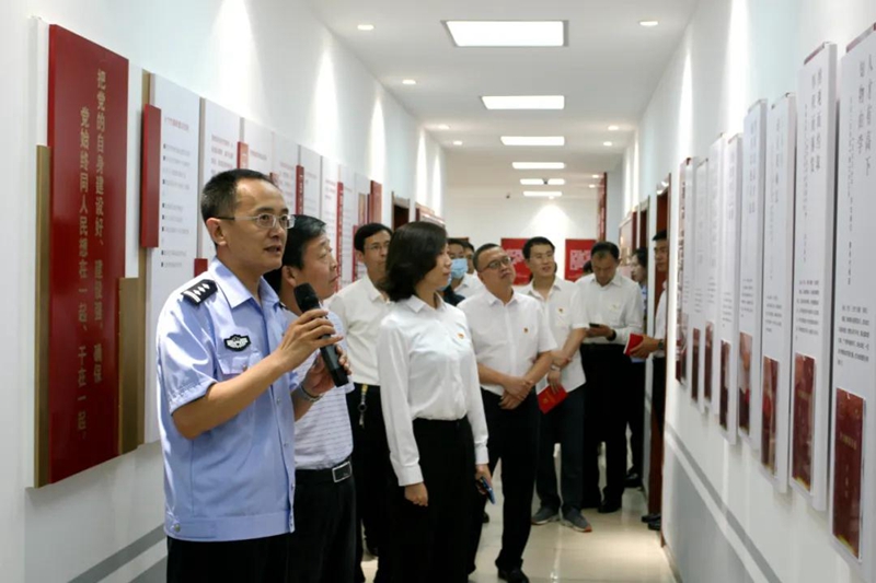 7月23日下午,雄安新区党工委党史学习教育第二巡回指导组组长张建葛、副组长王伟一行到容城县公安局调研指导党史学习教育开展情况。容城县委常委、宣传部长、县委党史学习教育领导小组副组长陈丽陪同调研。