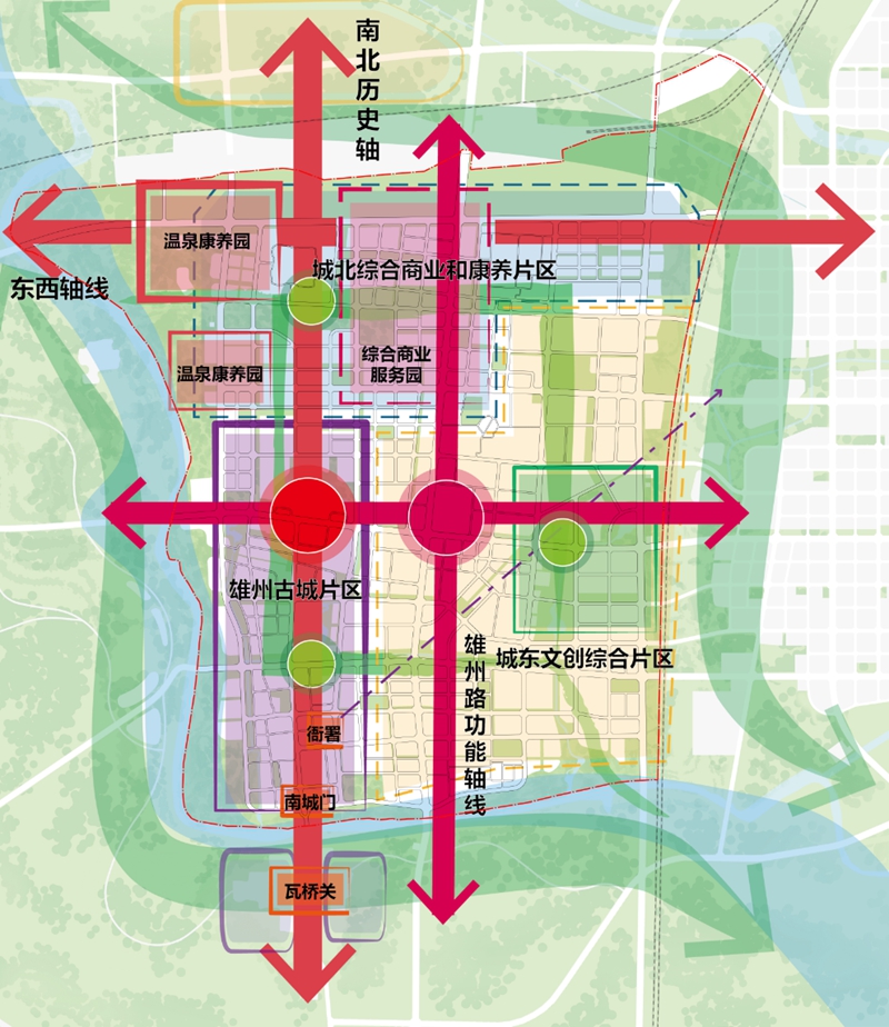 功能布局上,规划统筹生产、生活、生态三大空间,按照功能布局与雄东片区相衔接,主导功能相对集中、各类功能混合完善的原则,合理布局城市功能,突出雄县文化旅游特色,营造服务便捷、职住均衡的生活就业环境。