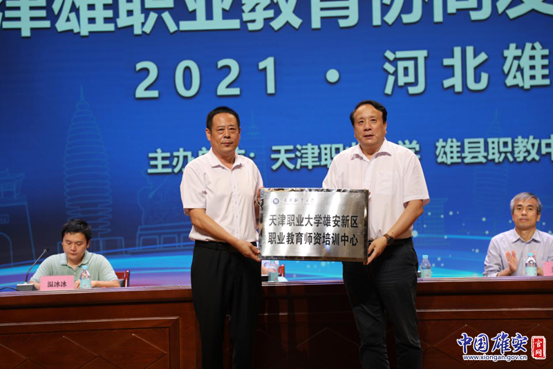 随后,刘斌为天津职业大学雄安新区职业教育师资培训中心进行授牌。论坛还为征文优秀教师颁发奖项。
