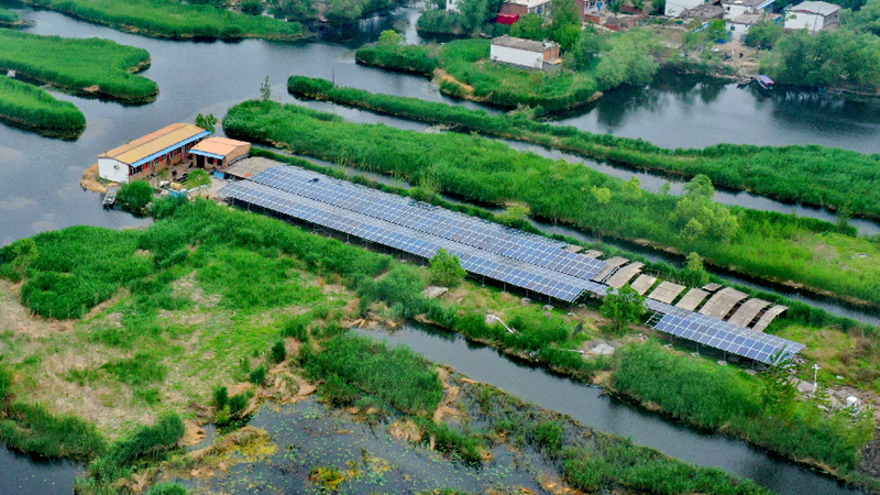 王家寨村是白洋淀唯一不通陆路的纯水区村,由一个主岛和17个卫星岛组成,有着“淀中翡翠”的美誉。雄安新区设立以来,王家寨村的生态环境有了翻天覆地的变化。为了进一步改善王家寨村以及白洋淀的生态环境,响应清洁取暖政策,国网雄安新区供电公司按照“1+3+N”模式,在王家寨规划建设了绿色智能微电网,即打造1个全绿电示范村,设置3个层级微网(村级、邻里级、家庭级),加上光伏座椅、智能垃圾箱、压电步道、直流智慧灯杆等N个创新元素,构建了以新能源为主体的新型电力系统。