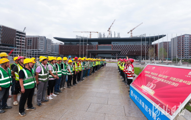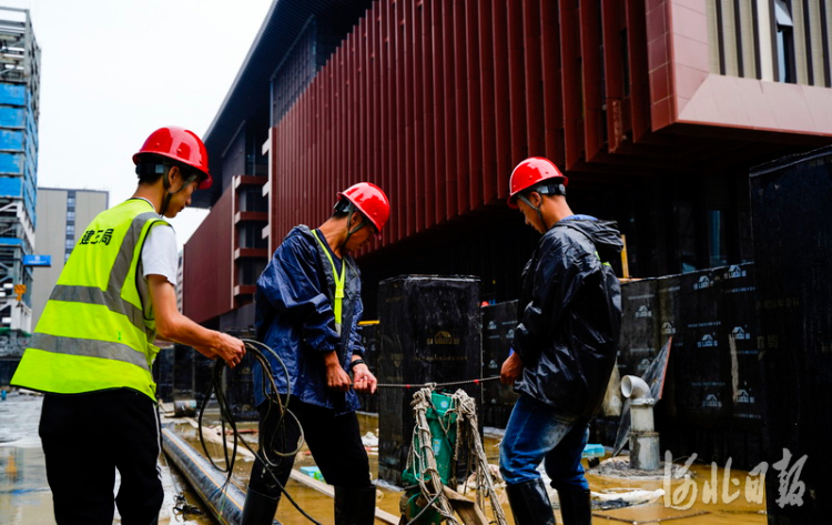 2021年7月29日,雄安商务服务中心项目组织施工人员进行防汛动员。河北日报记者耿辉 摄