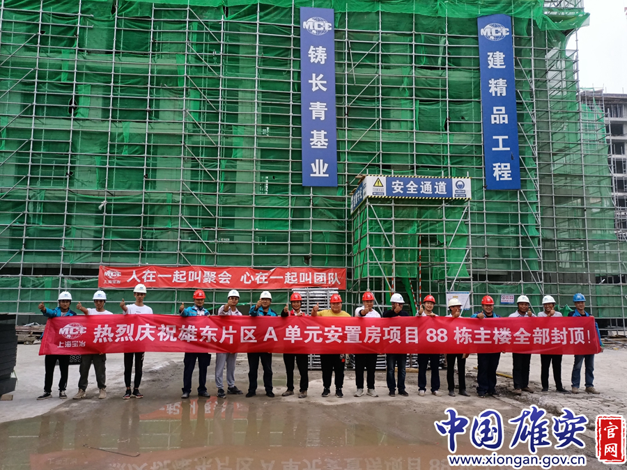 中国雄安官网8月1日电(记者崔利杰) 日前,雄安新区雄东片区A单元安置房项目88栋住宅楼主体结构全部封顶,车库结构完成100%,精装样板间一次性验收通过,进入二次结构和各专业穿插施工阶段。