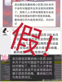 近日,平顶山市一些微信群、朋友圈中大量流传“有人感染德尔塔变异病毒”“塞纳城已列为高危禁闭区”的敏感信息。经平顶山市疫情防控流调部门核实,该信息为虚假信息。