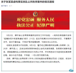 五、驻马店市遂平县一网民发布涉疫不当言论被刑拘!